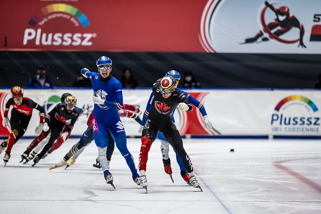 Thomas Nadalini of Italy competes in Men’s 1500m Final A race during the 2025 ISU Short Track World Tour in Gdansk, Poland.© ISU